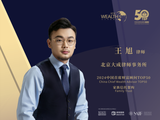 北京大成律师事务所合伙人王旭律师荣获2024年度中国首席财富顾问TOP50,并获家族信托架构领域TIPTOP顶级顾问称号,王律师自2022年已连续三年获得该奖项。