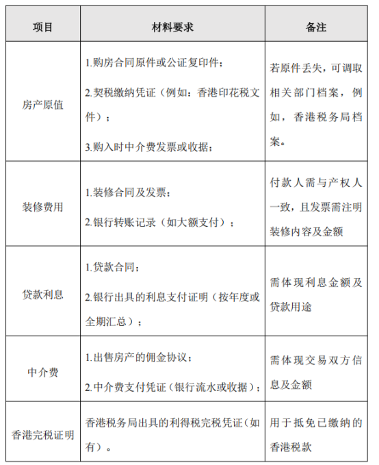 因此,在中国内地申报缴纳个人所得税时,可以从出售不动产的收入中,减除原购房成本(包括购房款及相关税费)、房屋装修费用、贷款利息、手续费等支出后,按照20%税率适用“财产转让所得”计算个人所得税税款。计算公式为: