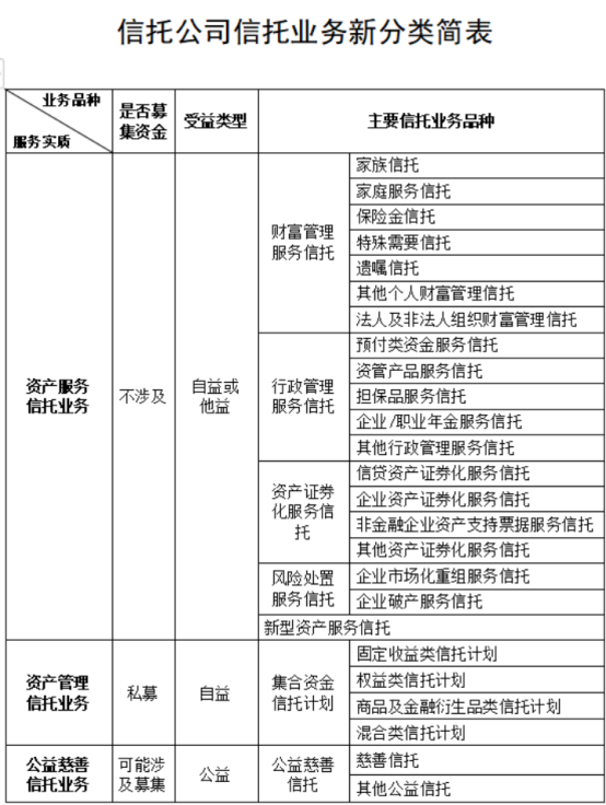 (《关于规范信托公司信托业务分类的通知》附件:《信托公司信托业务新分类简表》)